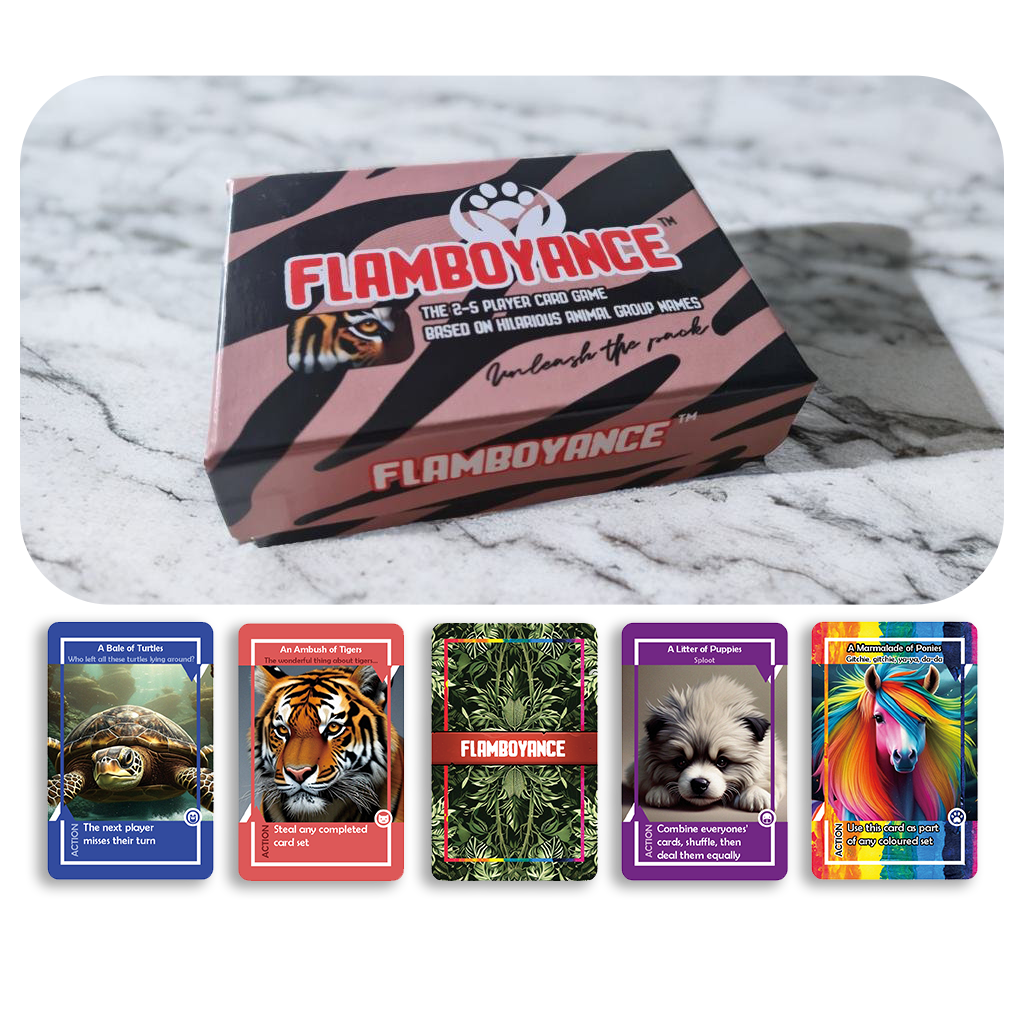 Flamboyance is quick to learn, easy to play, but difficult to master. With so many chaotic actions and house-rule tweaks available, the game can be played and enjoyed over and over again!