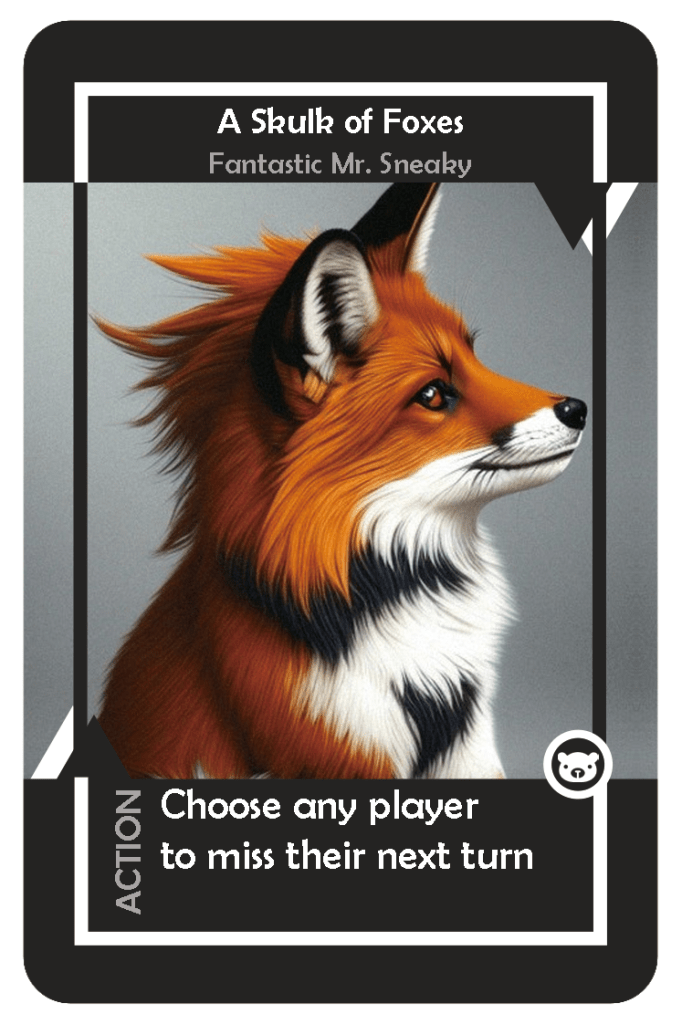 Our newest prototype improved upon card readability, humour, and added icons to support colour-blind players.